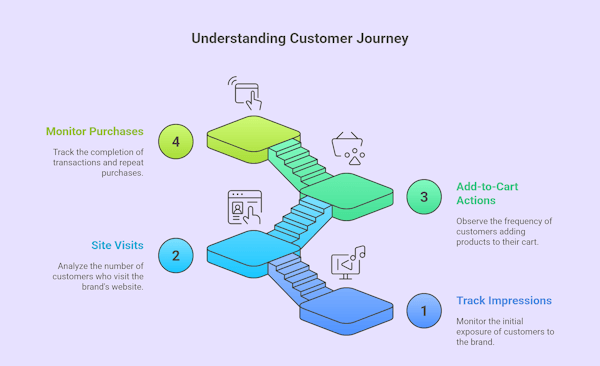 - Funnel Analysis: Break the customer journey into stages. Track impressions → site visits → add-to-cart → purchases, and even repeat purchases. GA4’s enhanced ecommerce events automatically capture many of these steps. Exporting GA4 events to BigQuery lets you build custom funnel reports or cohort analyses. You can see how many ad impressions became visits, how many visits led to cart additions, and how many turned into purchases or repeat orders.